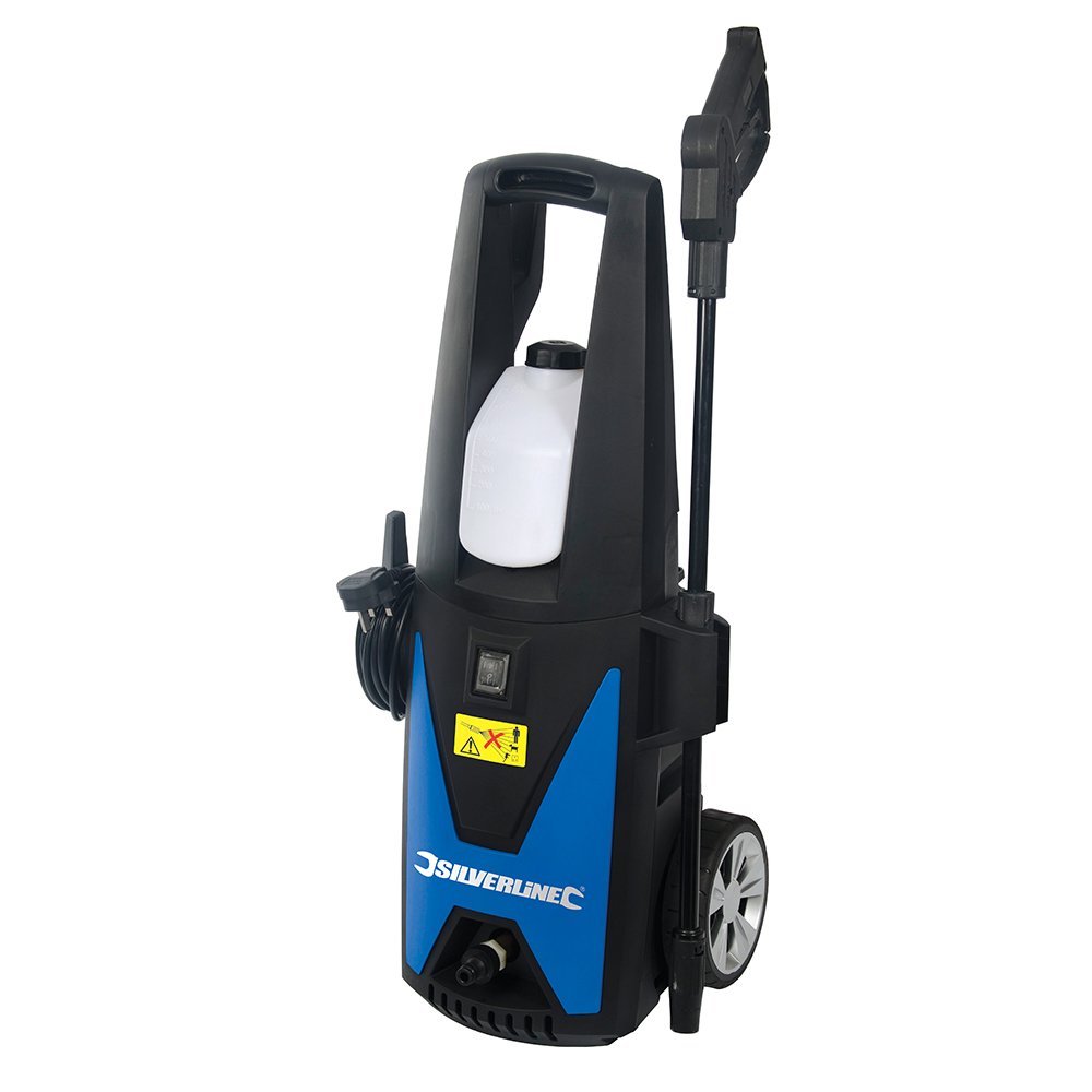 La hidrolimpiadora 101389 Silverline 1400W es una máquina eléctrica económica y muy eficiente capaz de soportar 85 bares, un caudal de 6,8 litros/minutos y una potencia eléctrica de 1400 vatios. La Silverline 101389 pesa 18 kg y posee un motor de inducción refrigerado por aire.