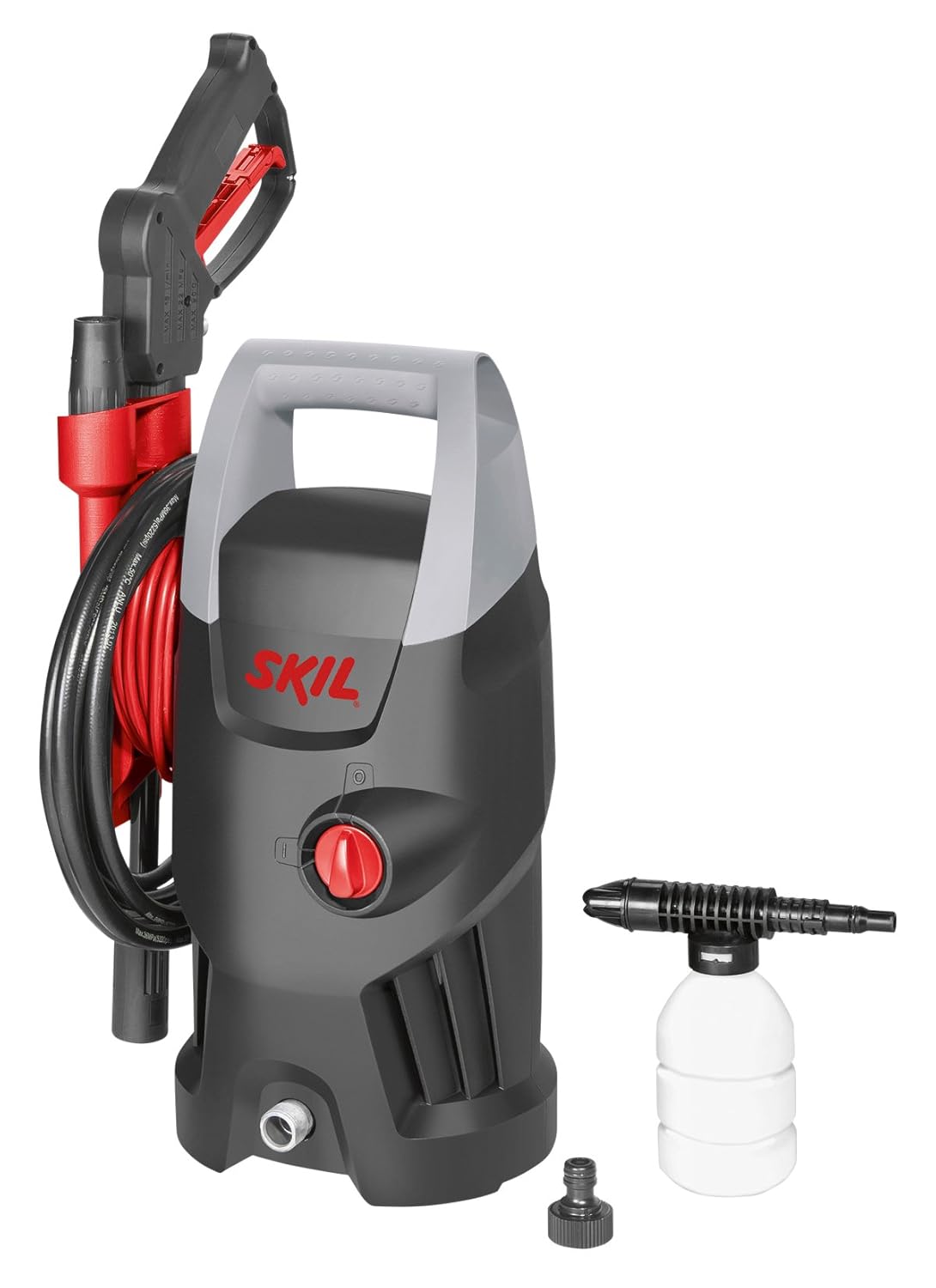 Para culminar esta lista de hidrolimpiadoras baratas queremos brindarte una última opción, también muy económica y viable para ti, se trata de la hidrolimpiadora de alta presión de la marca Skil, modelo 0761AA,vertical, en color negro, gris y rojo, la cual está disponible por sólo €78 y trabaja con 1400 vatios, 105 bares de presión y admite una capacidad de 370 litros/hora.